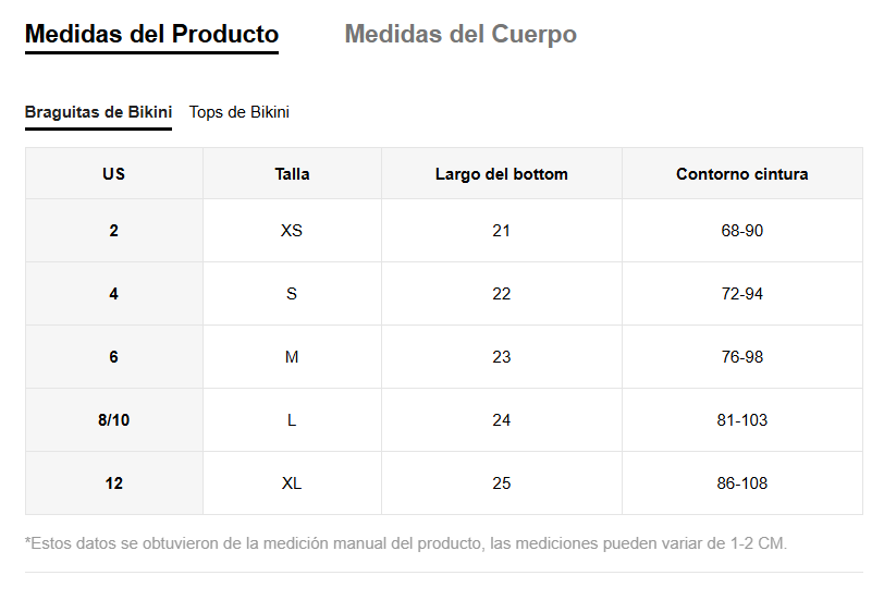 👉 Importante: son medidas de la prenda, no del cuerpo.